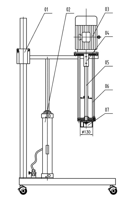 ◆依據用戶自備反應釜的大小,高剪切分散乳化機工作長度可加長或縮短。 |