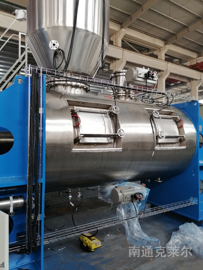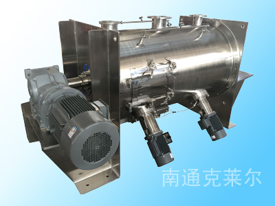犁刀混合機由圓筒體、傳動機構、犁刀、飛刀四部組成;工作時,犁刀做圓周運動,物料被犁刀刀面分流成兩個方向形成雙向物料流,與兩側犁刀分流過來的物料相互交叉形成對流,當物料流經高速飛刀時又被高速飛刀葉片剪切和拋灑,從而在較短時間內達到均勻混合。本機的混合精度高,混合時不產生離析,尤其對于容易團聚的物料,可以起到解聚和打散的作用。